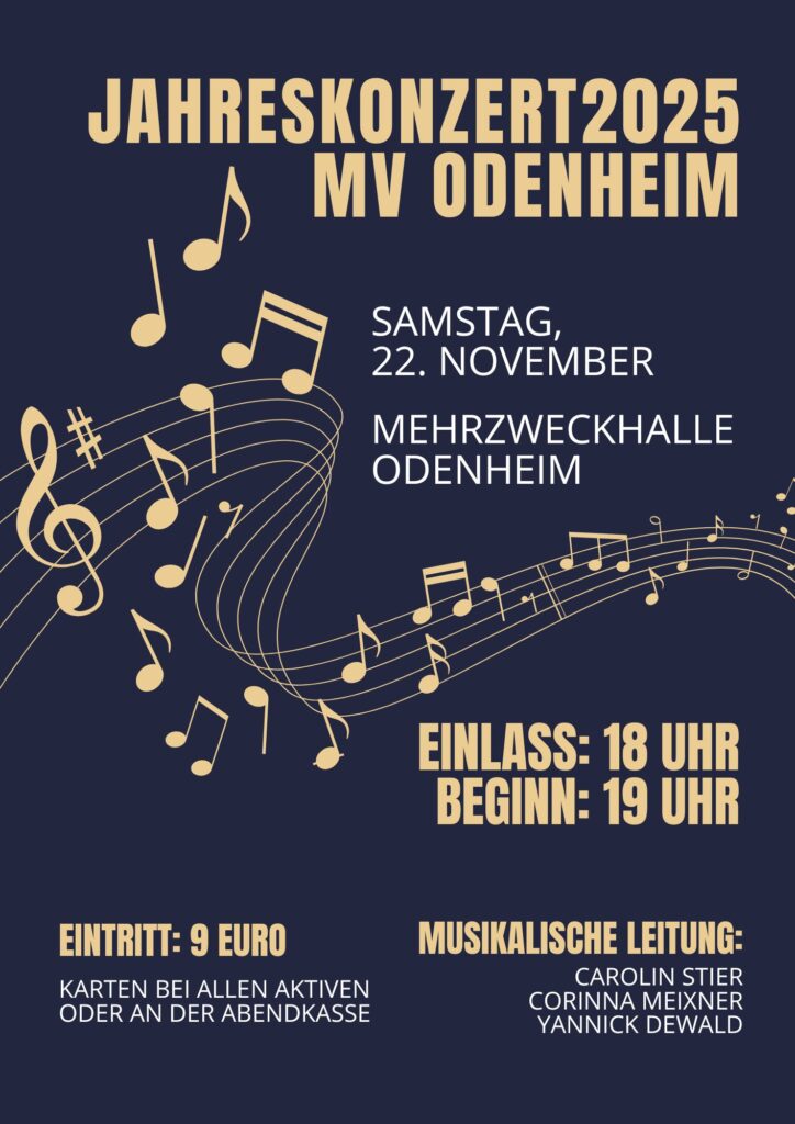 Wenn sich die Mehrzweckhalle Odenheim in warmes Licht taucht und die ersten Töne erklingen, ist es wieder so weit: Der Musikverein Odenheim lädt am Samstag, den 22. November, herzlich zu seinem Jahreskonzert ein. Mit „Herz, Magie und Höhenflug“ erwartet die Gäste ein Abend voller Emotionen, musikalischer Vielfalt und mitreißender Momente.